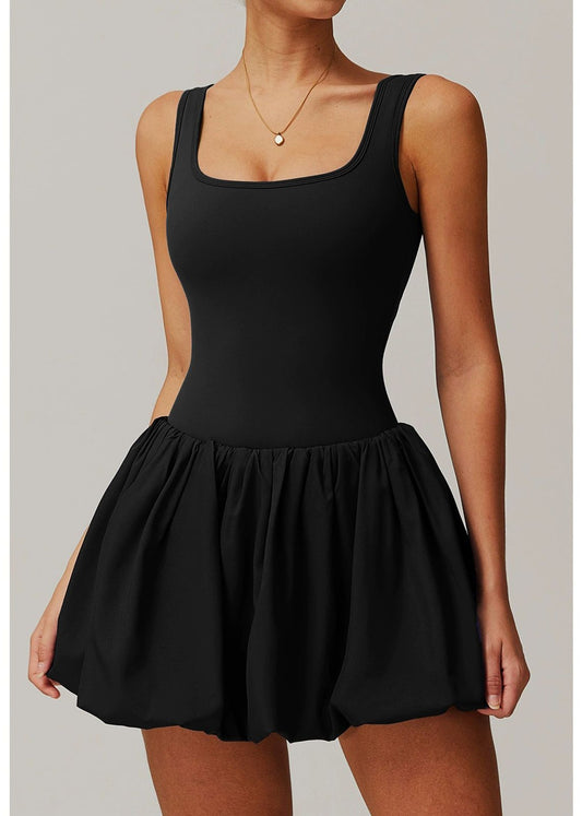 Venessa Statement Balloon Dress With Attached Short In Blue