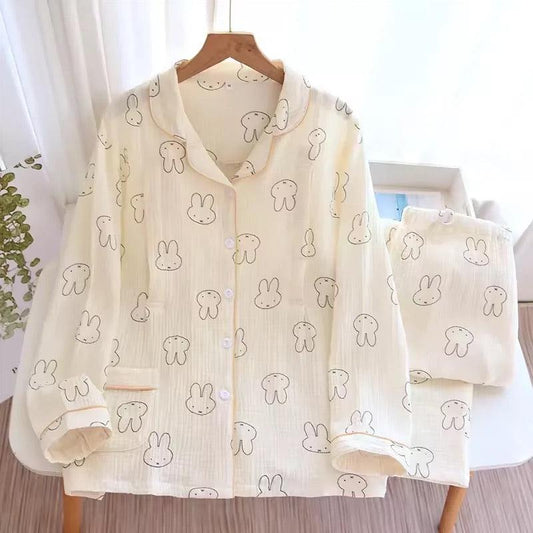• Bunny Cotton Crepe Nightsuits In Beige