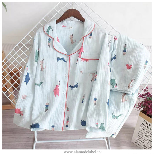 Bunny Cotton Crepe Nightsuits In Beige