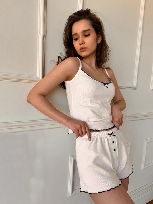 Alara Summer 2 Pcs Set - Set of Top And Skirt With Scarf In Black
