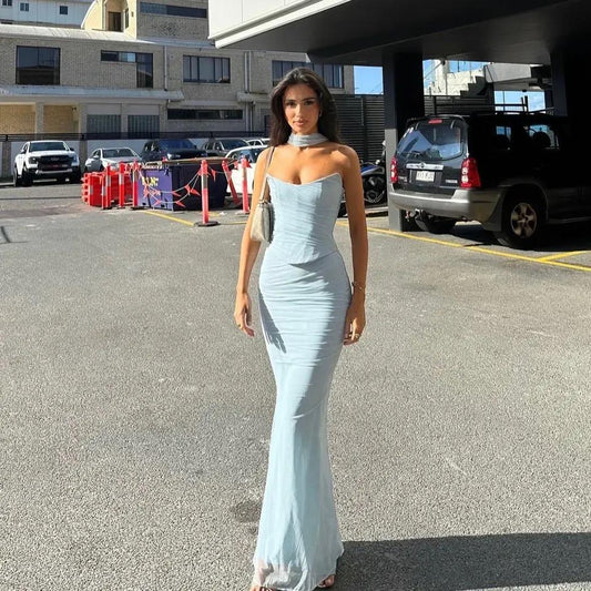 • Alara Summer 2 Pcs Set - Set of Top And Skirt With Scarf In Sky Blue