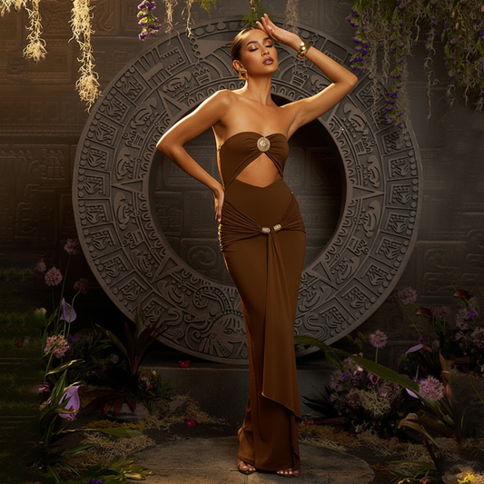 • Freza Bodycon Maxi Dress In Rust