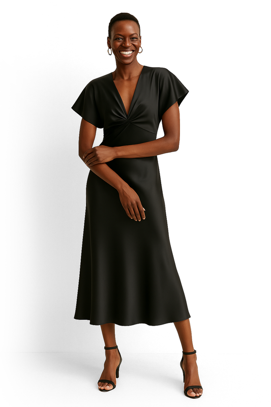 • Lipasa Satin Midi Dress In Black