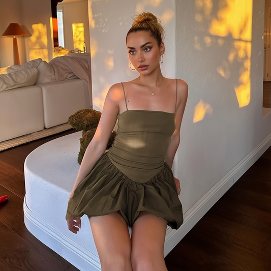 Camille Statement Balloon Dress In Olive