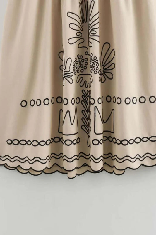 Jamie Embroidered Holiday Midi Dress in Beige - Luxe Collection