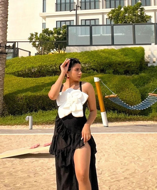 Camellia Rosette Swimsuit with Ruffled Skirt