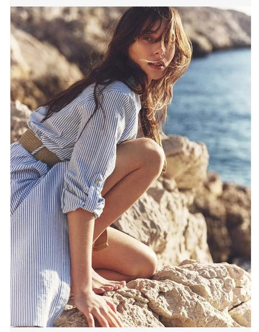 Jamie Luxe Striped Shirt Dress With Belt In Blue