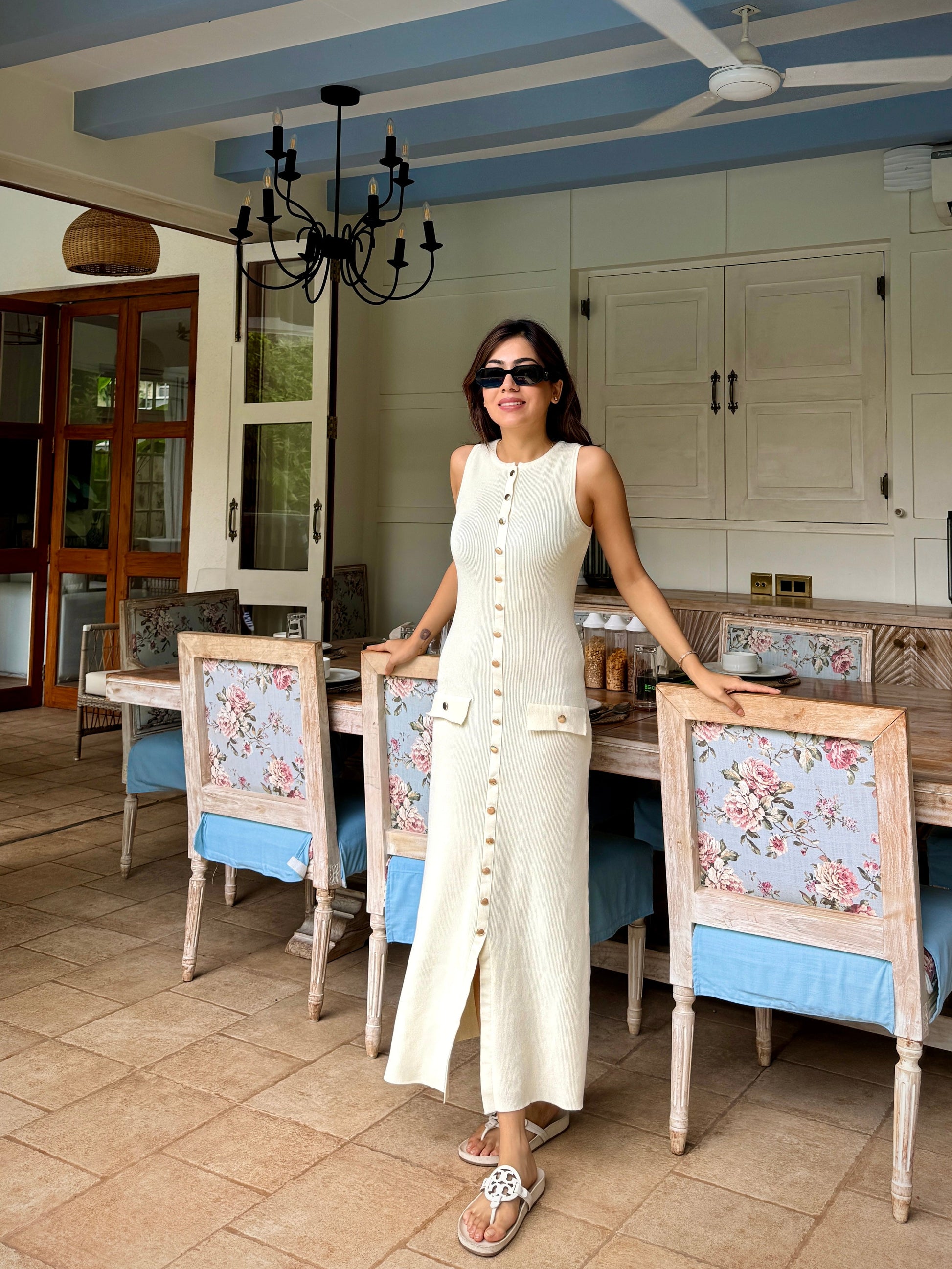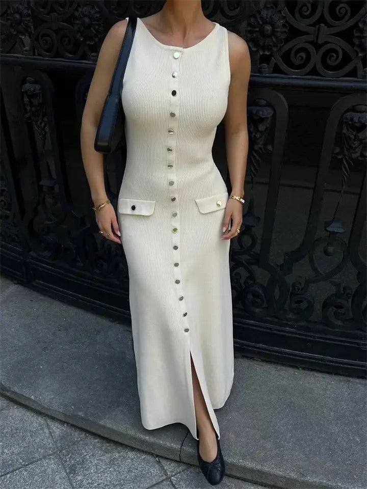 Du Luxe Soft Knit Dress in Beige