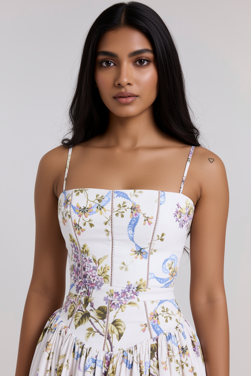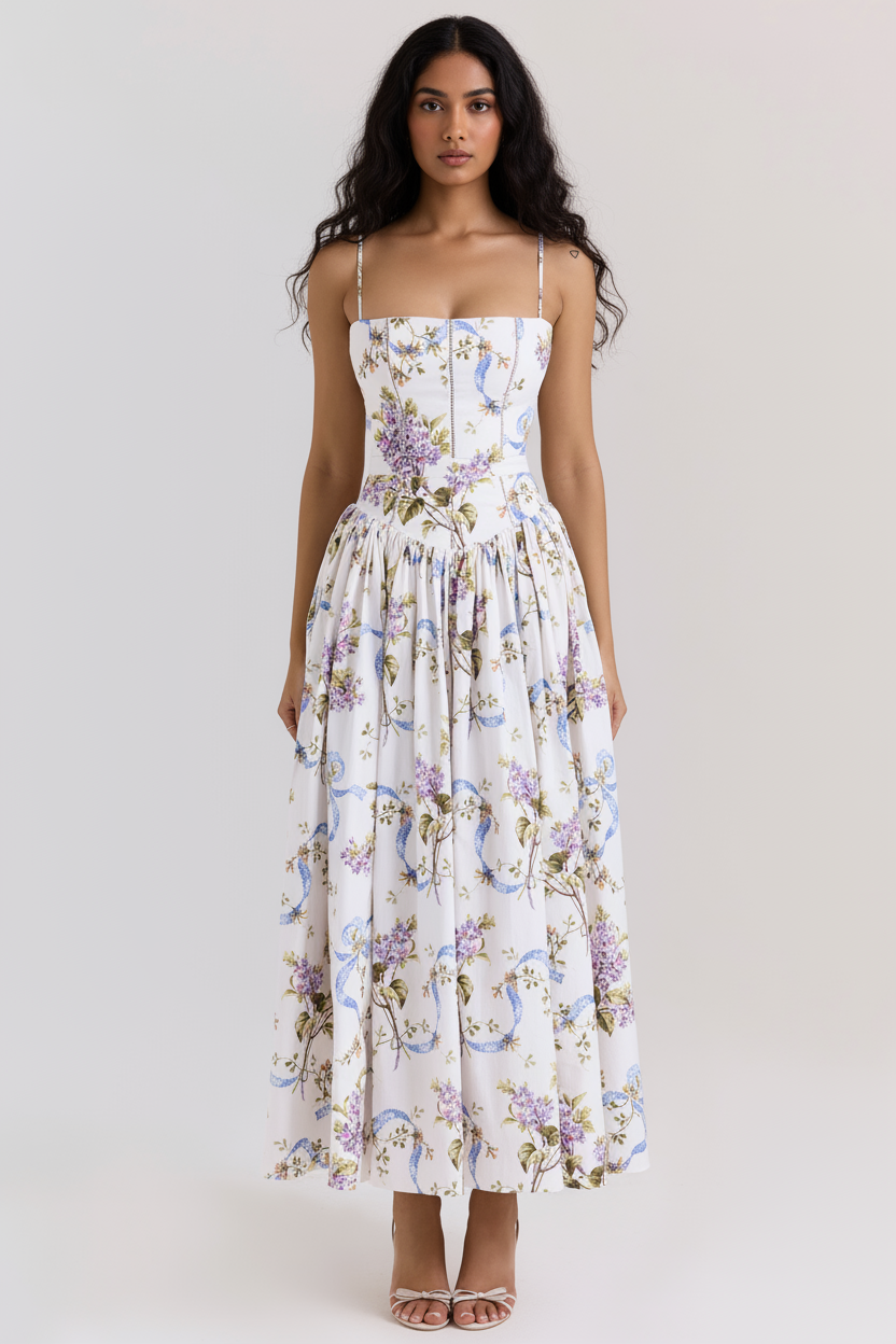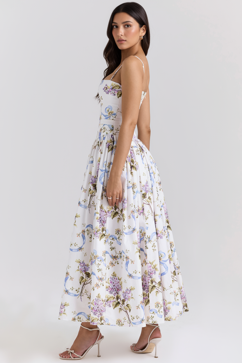 Eris Luxe Floral Maxi Dress In Off White