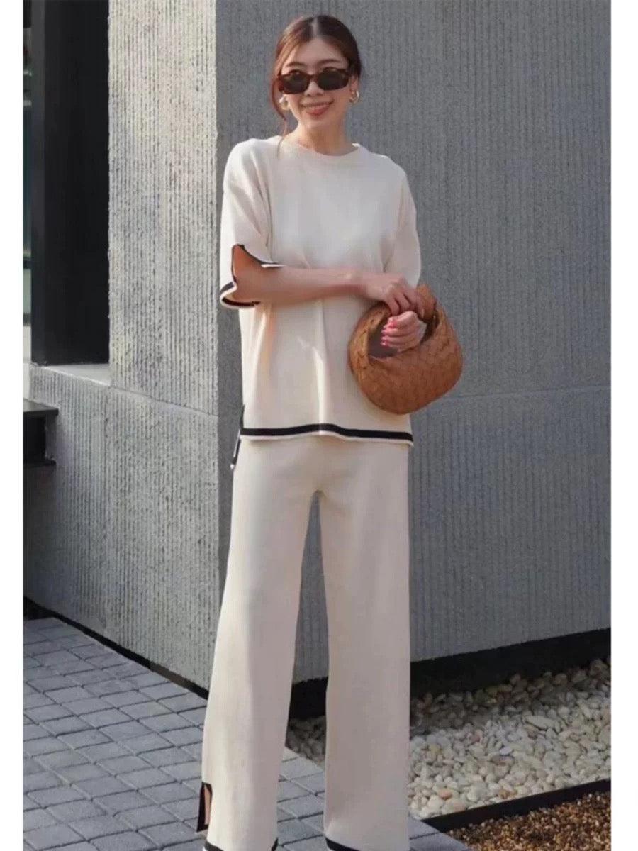 Flexxi Knitted Cotton Co-ord Set In Beige