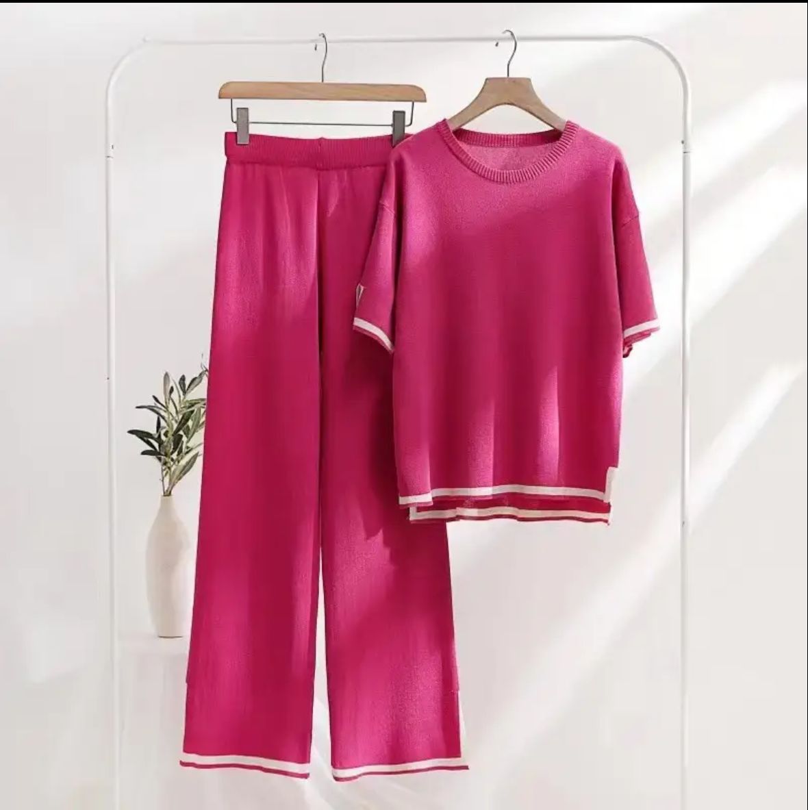 Flexxi Knitted Cotton Co-ord Set In Pink