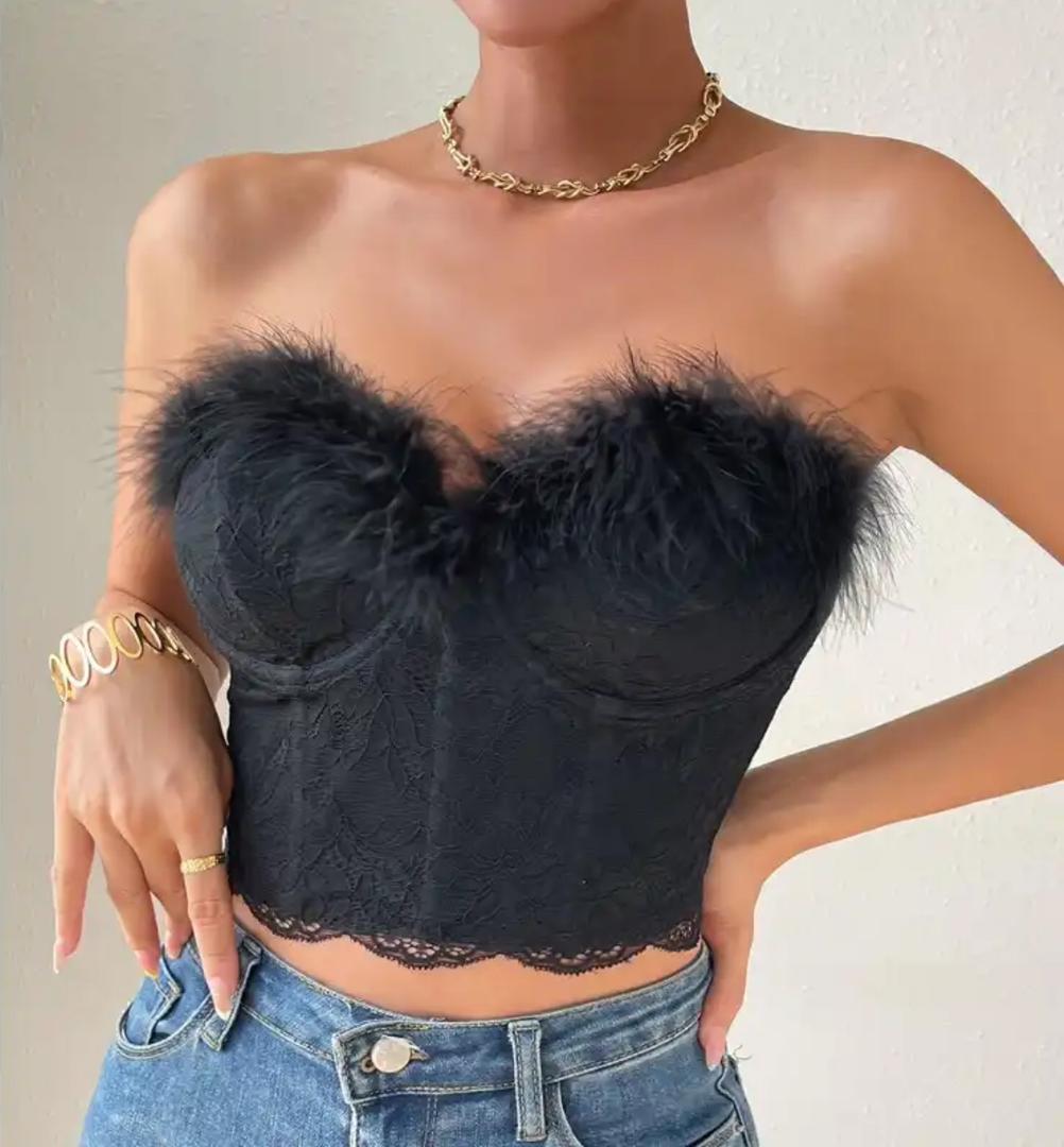 Helix Fur Bustier Top