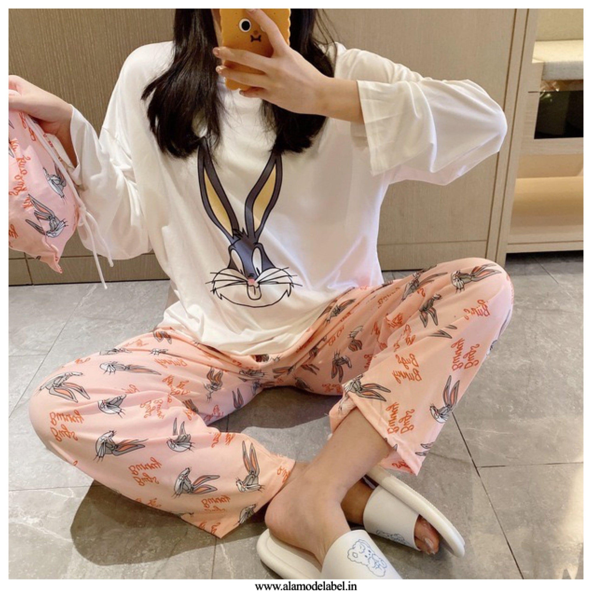 Iris Set of Cotton Nightsuit with Bag In Peach