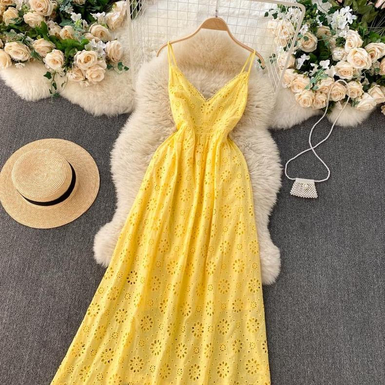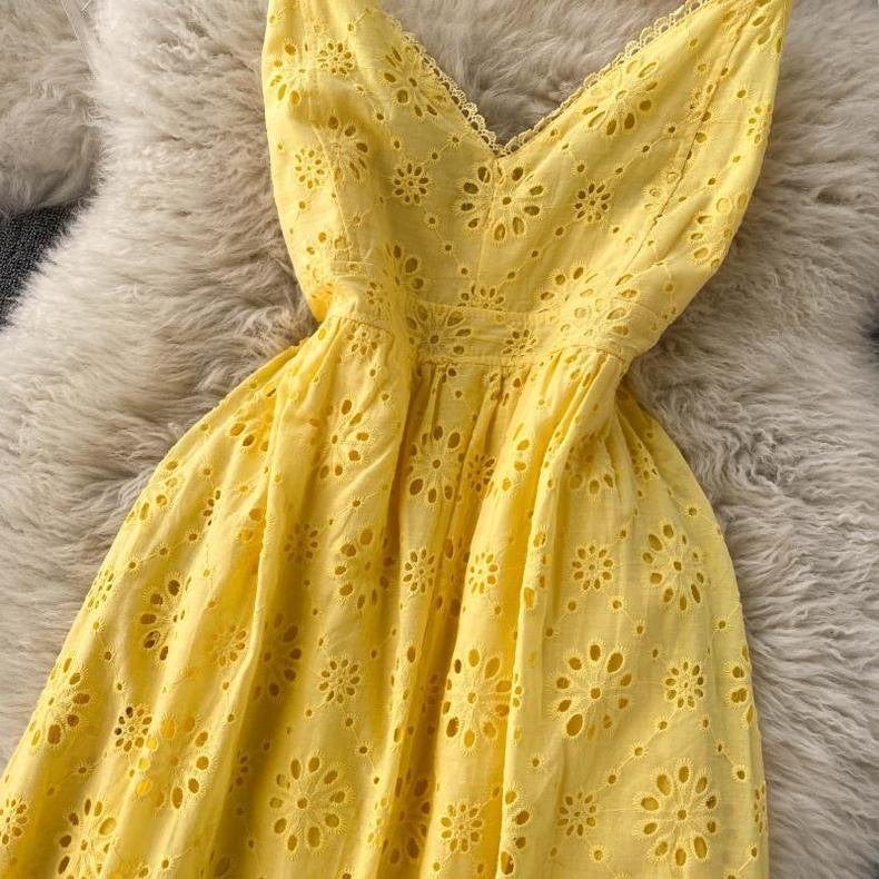 The eyelet cotton dress in sunny yellow is the perfect addition to your wardrobe for a day out. This gorgeous dress brings together effortless style and comfort. Crafted from airy cotton and adorned with delicate eyelet embroidery, this dress is a stunning testament to the designer's attention to detail. The breezy silhouette flatters every body type and exudes a laidback charm that's perfect for a casual day out. Whether you're strolling through a park or meeting friends for brunch, this eyelet cotton dress is a must-have. As seen on Tejasswi Prakash, it's the perfect statement piece to add to your collection. So why wait? Grab this eyelet cotton dress and get ready to make heads turn wherever you go.