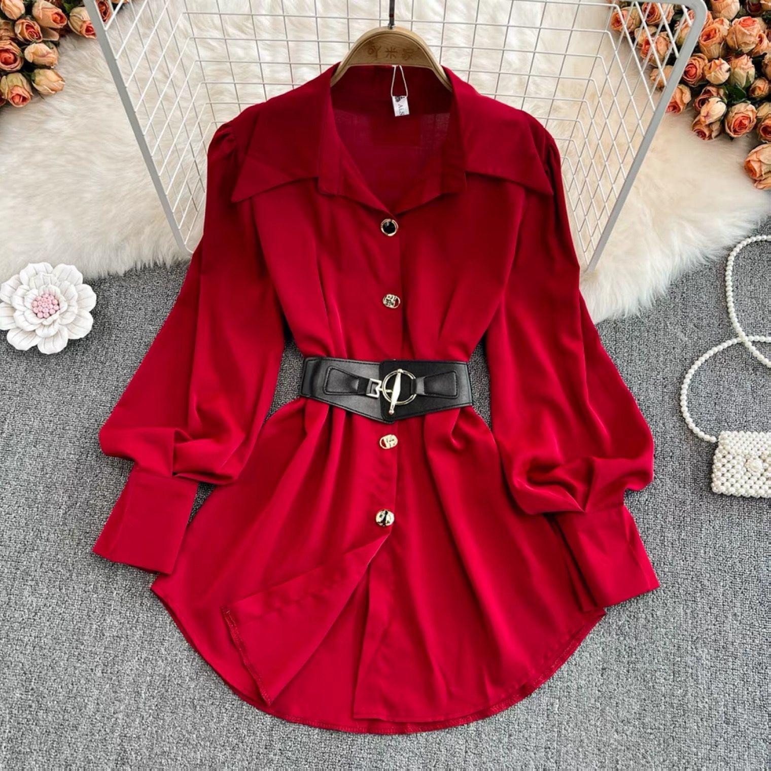 Locaste Statement Shirt With Belt In Red