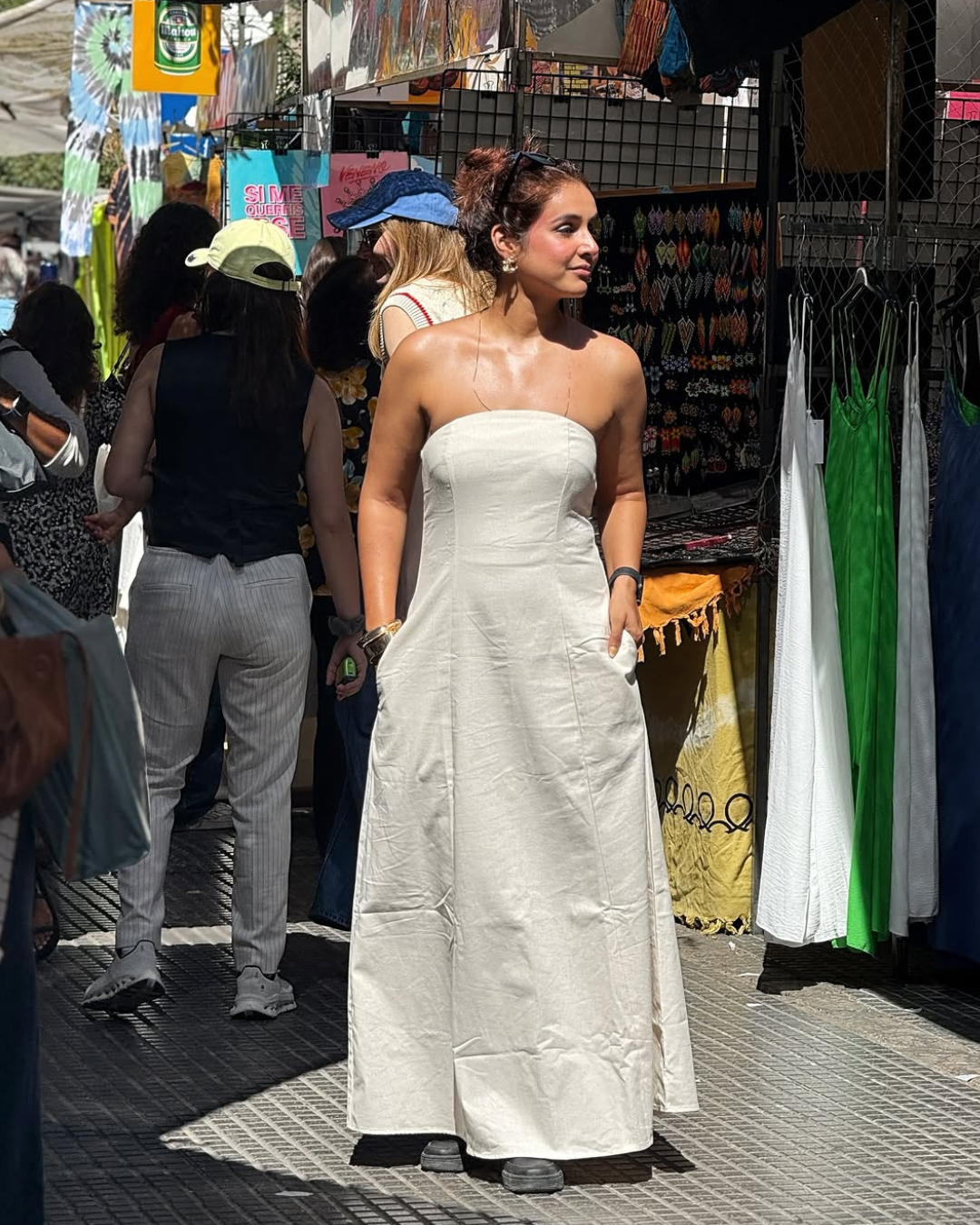 Maisie Offshoulder Holiday Tube Dress In Beige