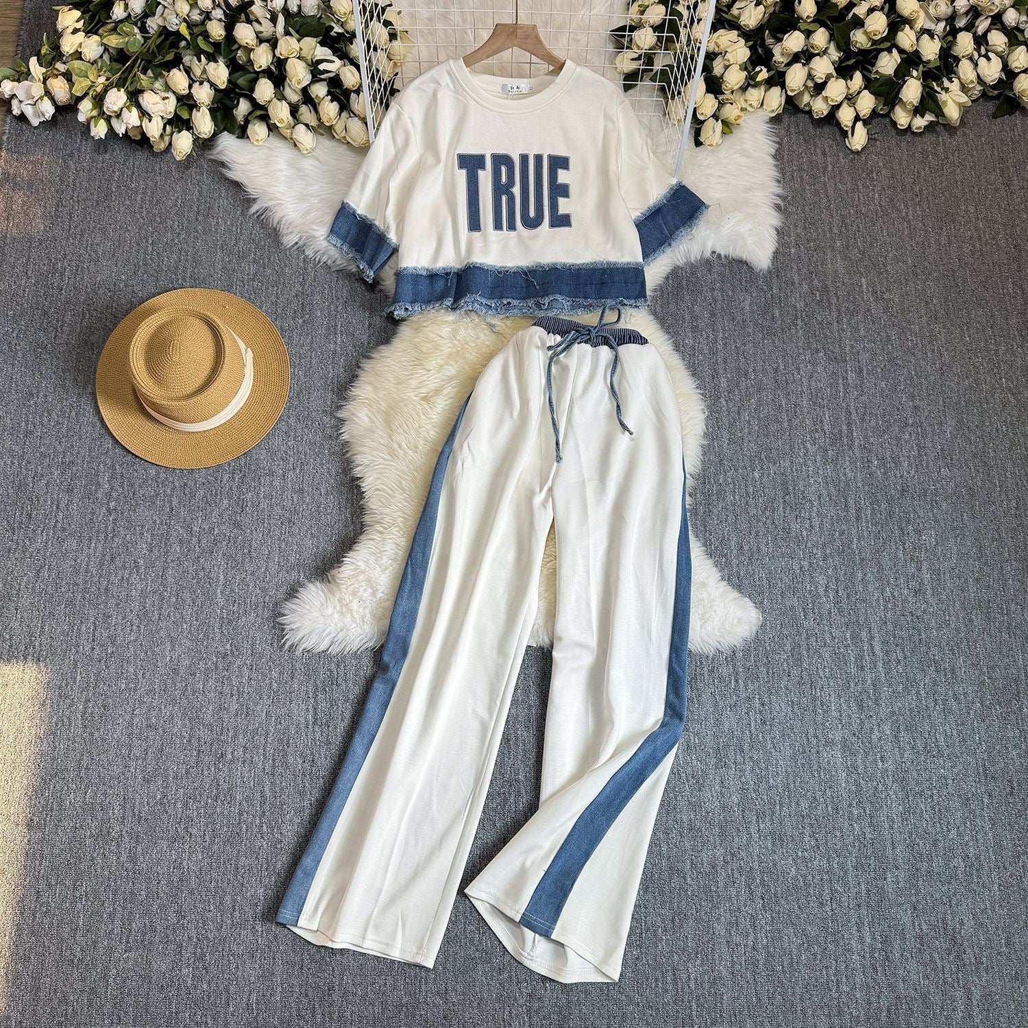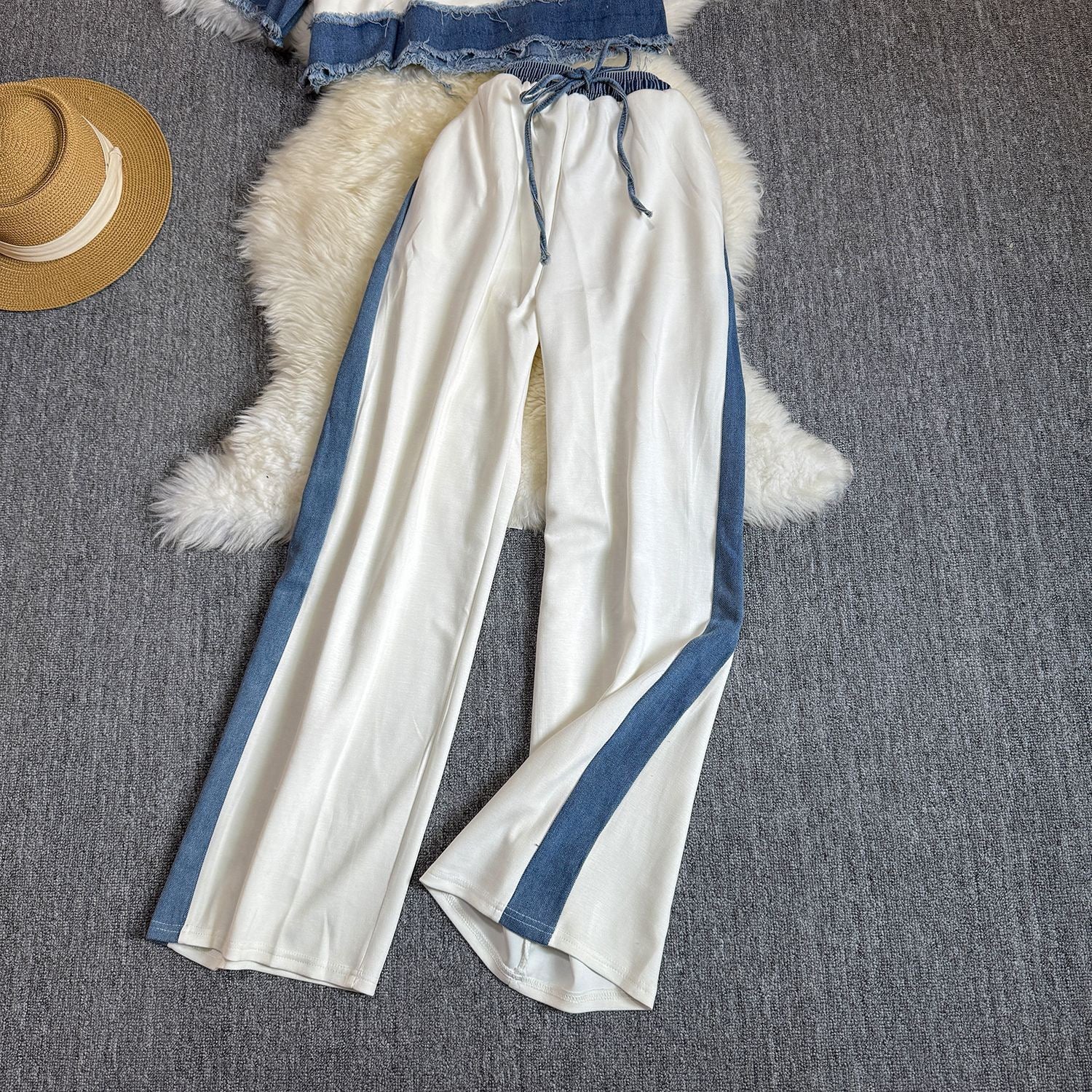 Noemi Knitted Soft Denim Co-ord Set In White