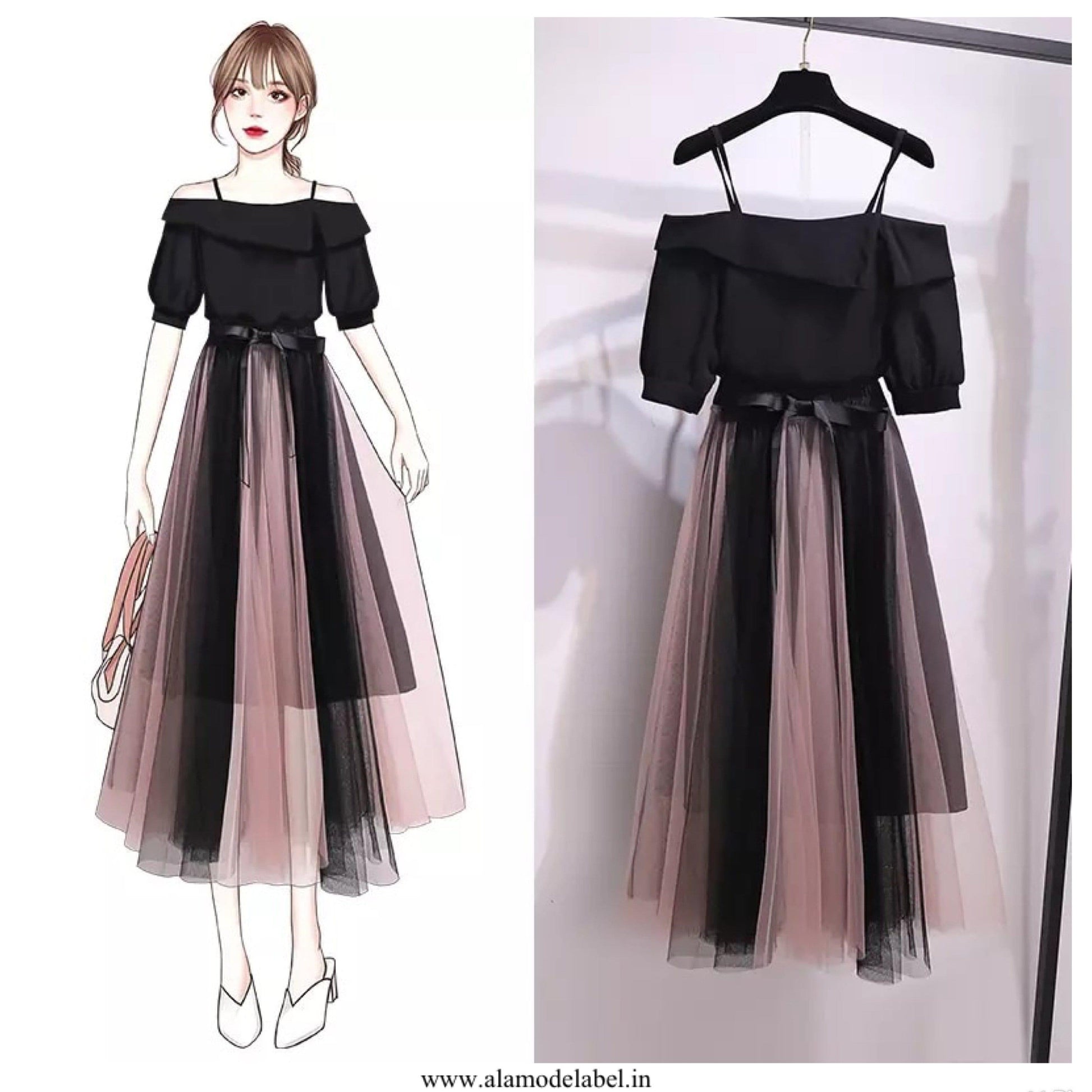 Material : Cotton Blend top , Mesh Skirt