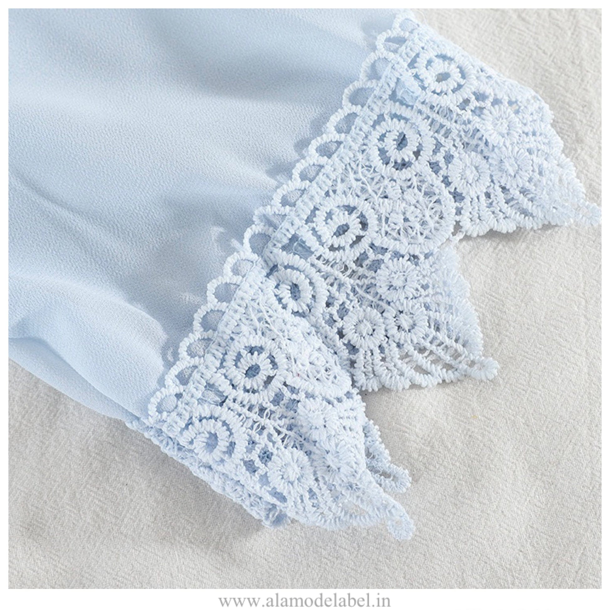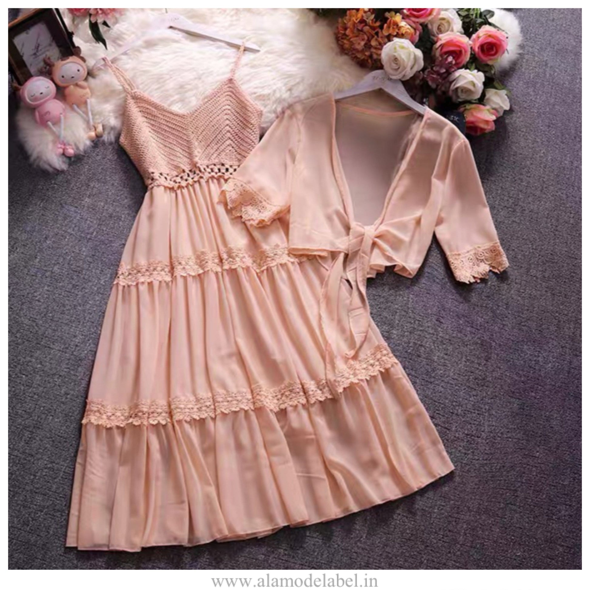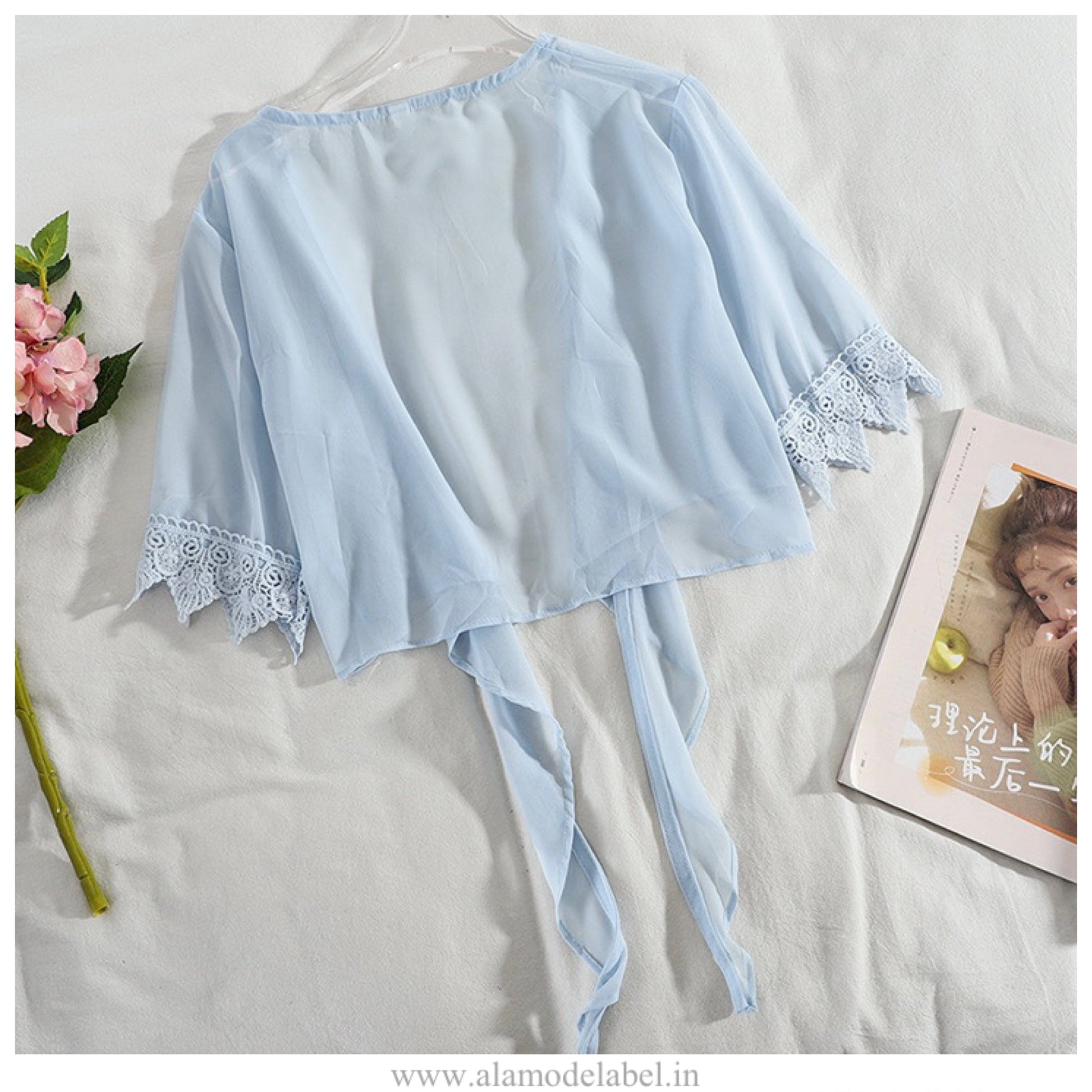 Material : Luxury Sheath with Lace Detailing and  Chiffon Cover up