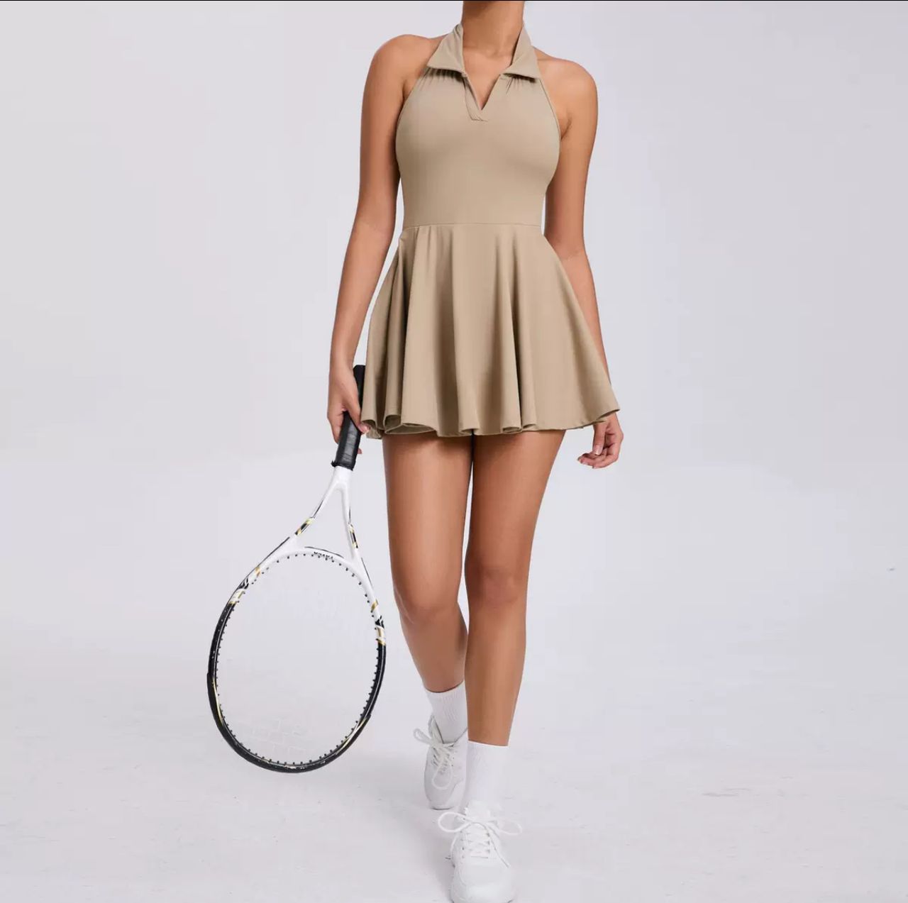 Rebbi Tenniscore Statement Dress With Attached Short In Brown