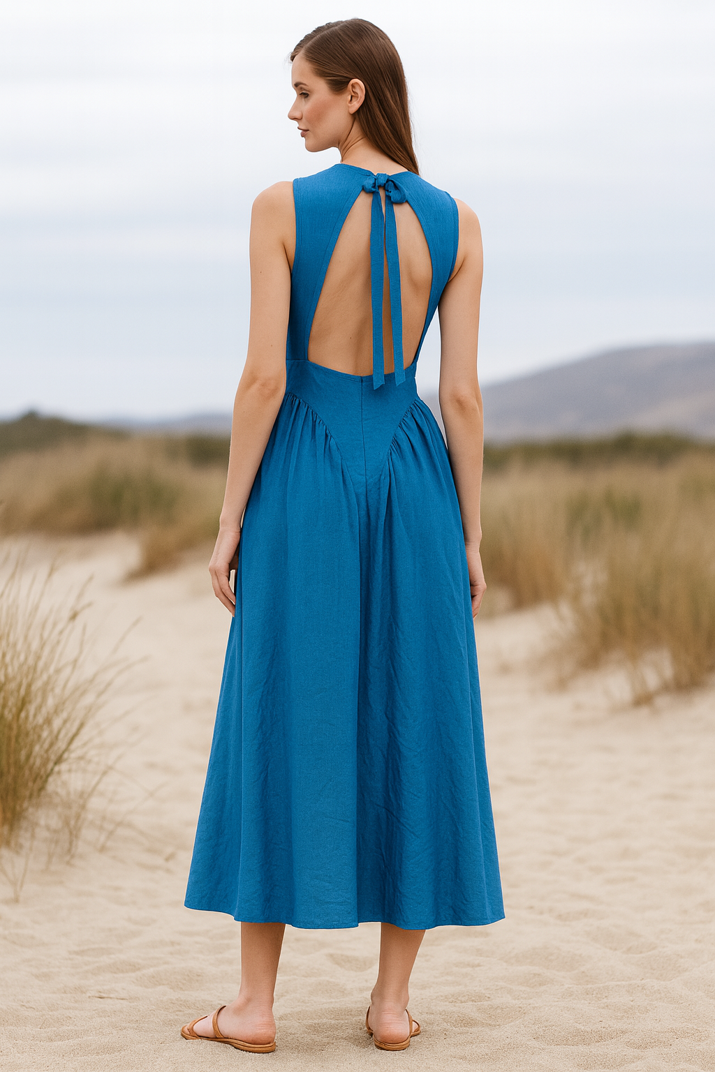 Featuring a flattering drop waist, sleeveless cut, and flowy midi length dress is perfect for brunches, holidays, or evening outings. Crafted in breathable fabric, it combines comfort with sophistication.