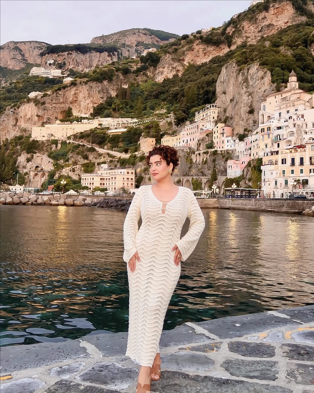 Shirly Luxe Crochet Knit Dress -Resortwear In Beige